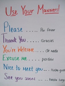 There are some fab parents around who are teaching their children these social graces. Thank you, it’s appreciated. It makes me smile when I see a child say thank you, please or excuse me. But what I found is those parents have great social graces too. It’s easy to pass it along when you practice what you preach.